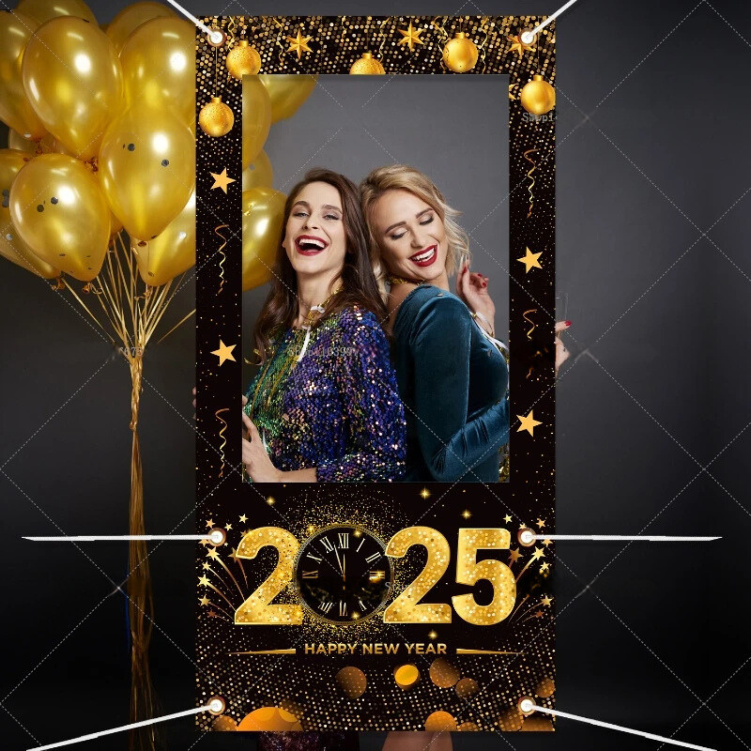 2025 Neujahr Fotobox Requisiten & Rahmen-Set