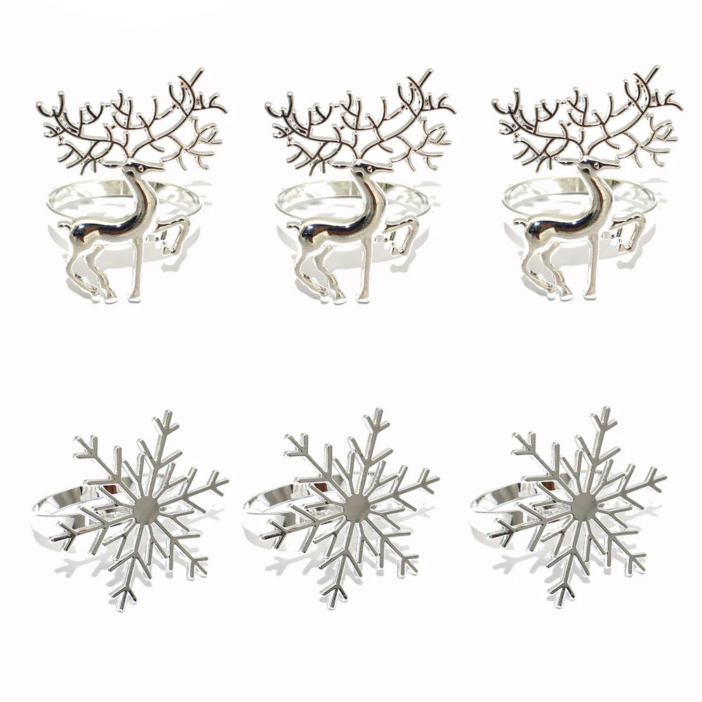 6er Set Silber & Gold Schneeflocken Serviettenringe